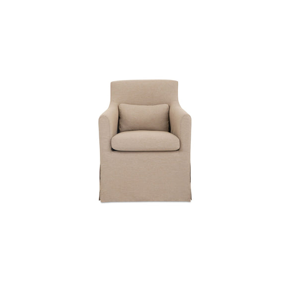 • Defined form: Curved armrests and an inverted-pleat slipcover create a structured, traditional profile, adding tailored detail that translates effortlessly into modern outdoor dining settings.