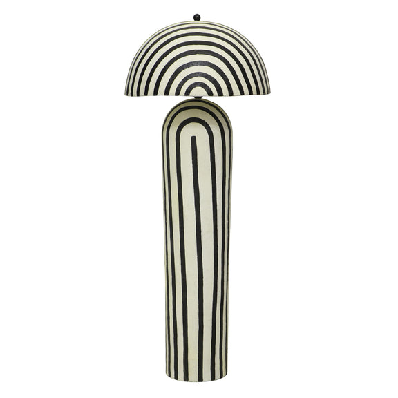 Illuminate your space with the charming Maiori Striped Papier Mache Floor Lamp, featuring a beautiful bold silhouette crafted from innovative paper mache construction. The lamp's punchy stripes add a playful touch, complemented by a domed lampshade and an adorable orb finial. Also available as a table lamp, this lamp effortlessly adds striking personality to any space, making it a delightful and stylish accent for your home.