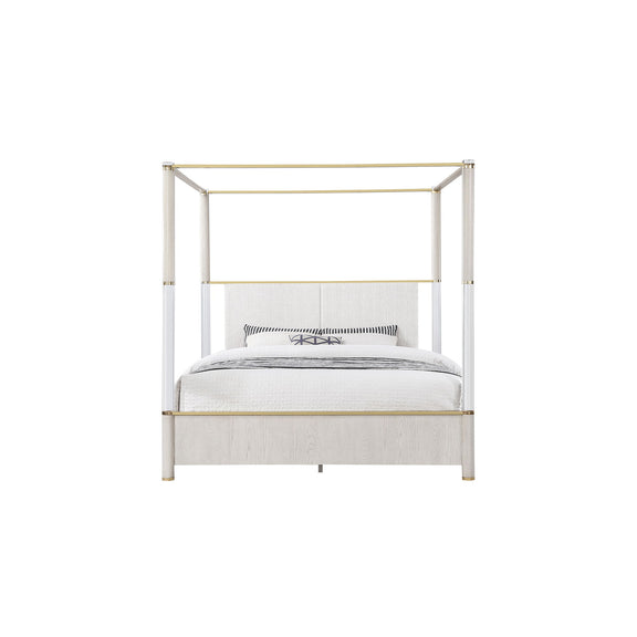 Malco - Queen 4 Post Bed With Gold Accents And Upholstered Headboard - Oak