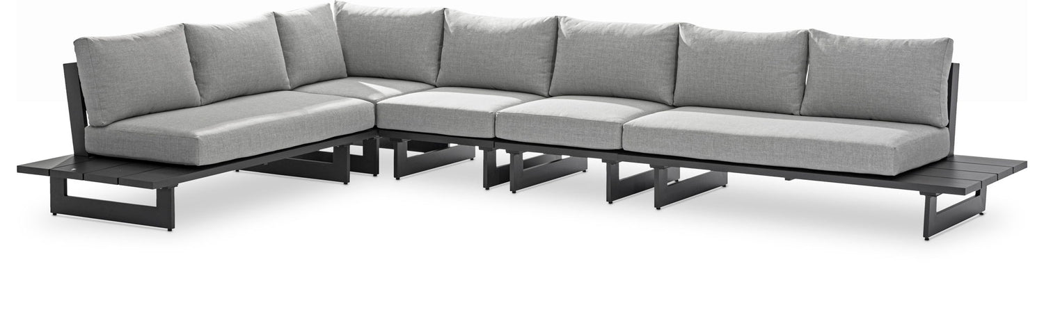 Maldives - 5 Piece Water Resistant Outdoor Patio Modular Right Arm Facing Sectional With Gray Base - Gray