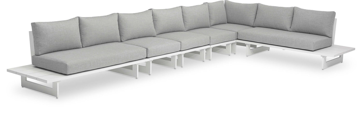 Maldives - 6 Piece Water Resistant Outdoor Patio Modular Left Arm Facing Sectional With White Base - Gray