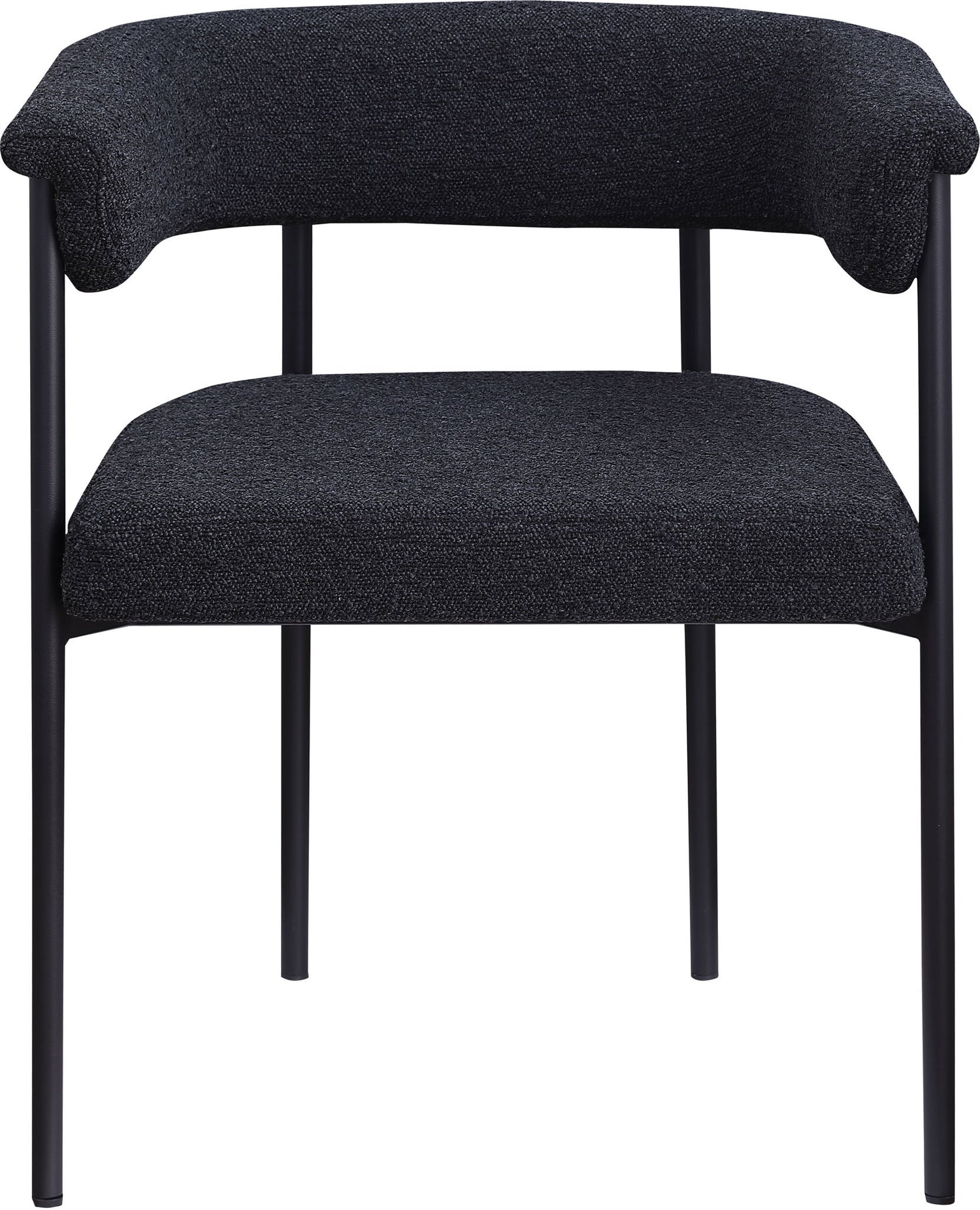 Showcase your unending hospitality when you make guests feel comfortable seated on this Malin black boucle fabric dining chair. The epitome of up-to-the-minute elegance, this chair merges sleek durability with timeless sophistication. Perfect for both formal dining and casual gatherings, its contemporary design effortlessly elevates any space. This chair isn't just about comfort (although it is). It's a statement of style that promises to enhance your dining experience with its luxurious materials and impeccable craftsmanship.