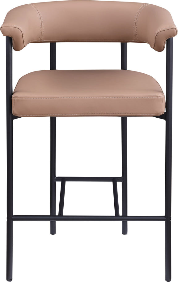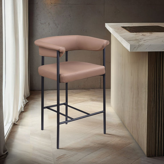 Guests feel comfortable for the whole meal when they're seated in this impressive Malin tan vegan leather counter stool. Its contemporary design effortlessly combines elegance with durability, making it a versatile addition to any dining setting. Perfect for both formal dinners and casual meals, this stool promises not only comfort but also a touch of sophistication to enhance your dining experience. Elevate your decor with this stylish and practical piece that harmonizes seamlessly with modern interiors.