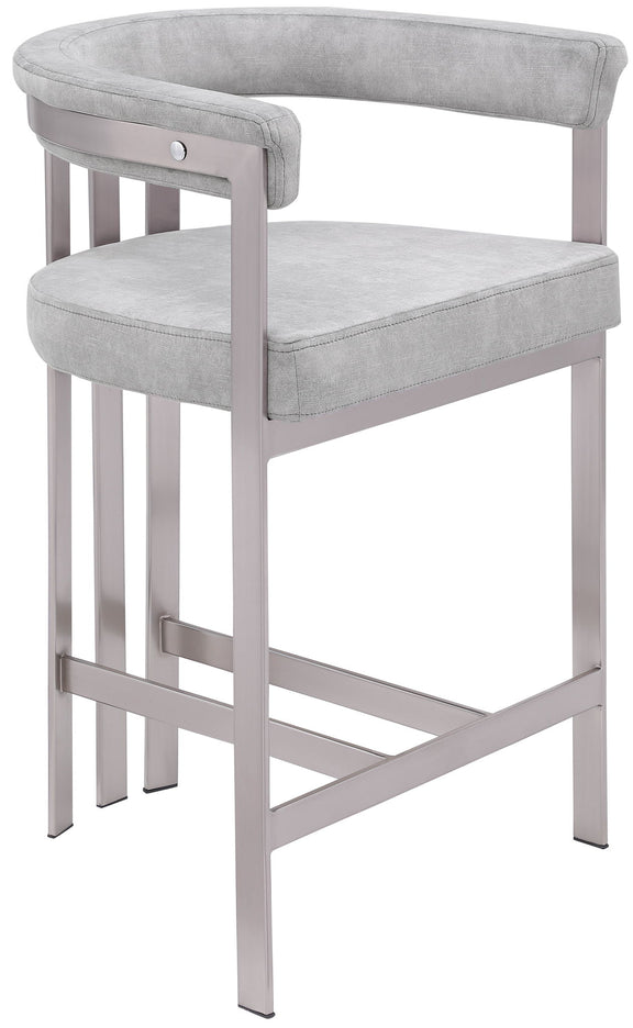 Turn your dining space into a contemporary haven with this Marcello beige velvet counter stool. Its soft, high-end velvet is soft for you to sit on, while its brushed chrome iron frame ensures durability for years to come. Its curved back provides support while you sit and enjoy your meal, so your back won't get tired or hurt while you eat. Its curved, contemporary design is perfect for any modern home.
