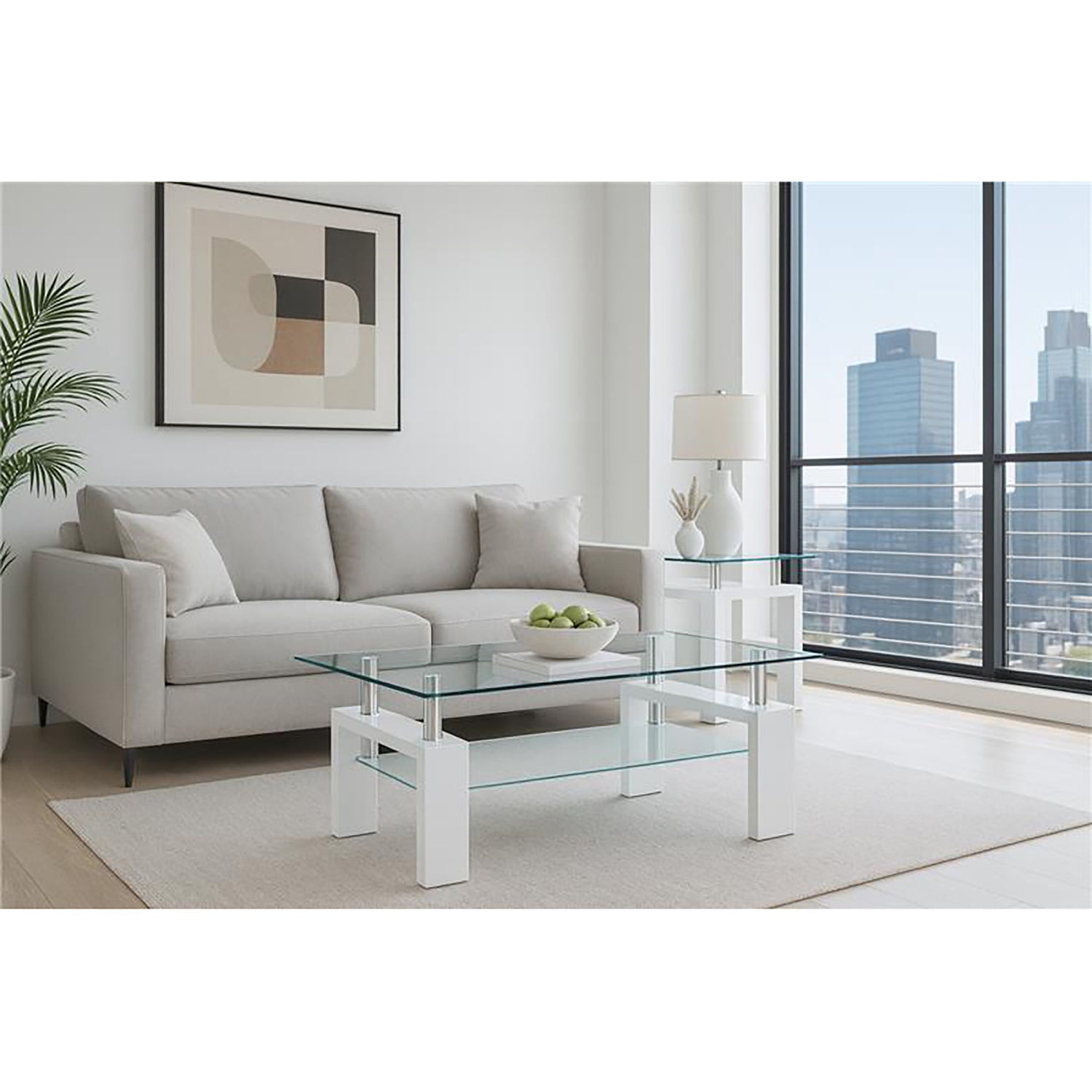- Elegant Design: The MARSHALL TABLE features a sleek finish complemented by clear glass top, offering a contemporary and sophisticated look to any living space.