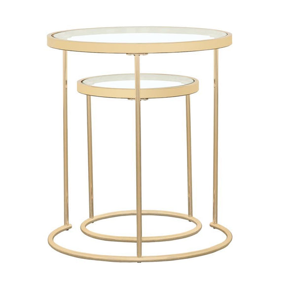 Maylin - 2 Piece Round Glass Top Nesting Table Set - Gold