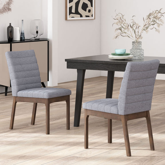 Mid Century Modern Dining Chair (Set of 2) With Channel Stitching - Dark Gray