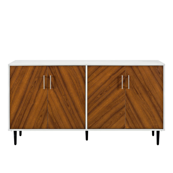 Mid-Century Modern Faux Bookmatch Door Buffet - White / Teak