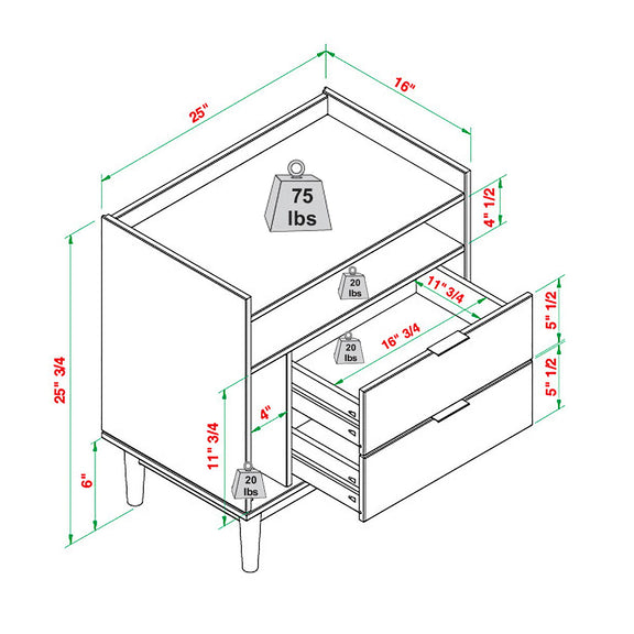 25.0"W x 16.0"D x 25.5"H - 35.0 lb