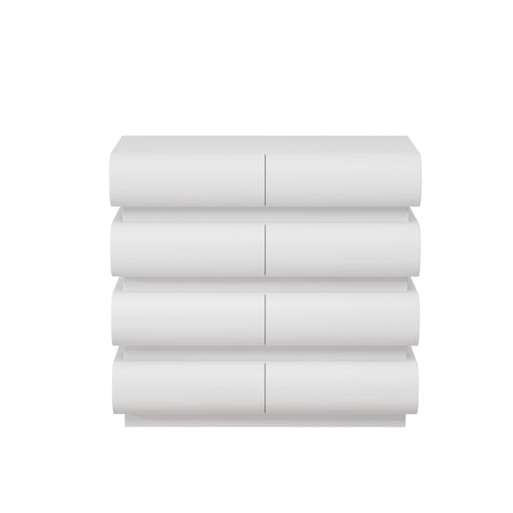 Minimalist Handle Less 8 Drawer Dresser With Wide Storage - White