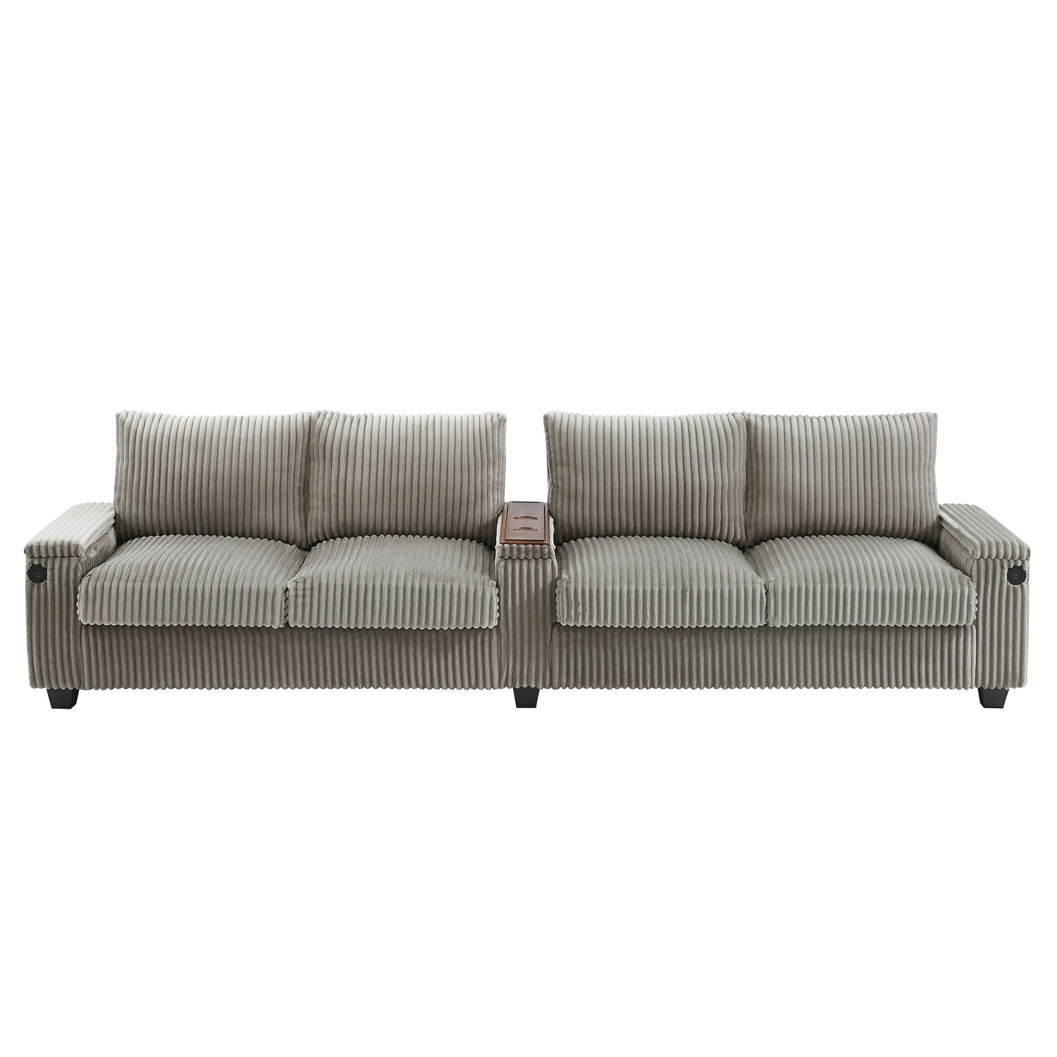 Modern 4 Seater Corduroy Sofa Couch With USB Ports, Hidden Storage Arms, And Flip Top Cup Holders - Brown - Brown