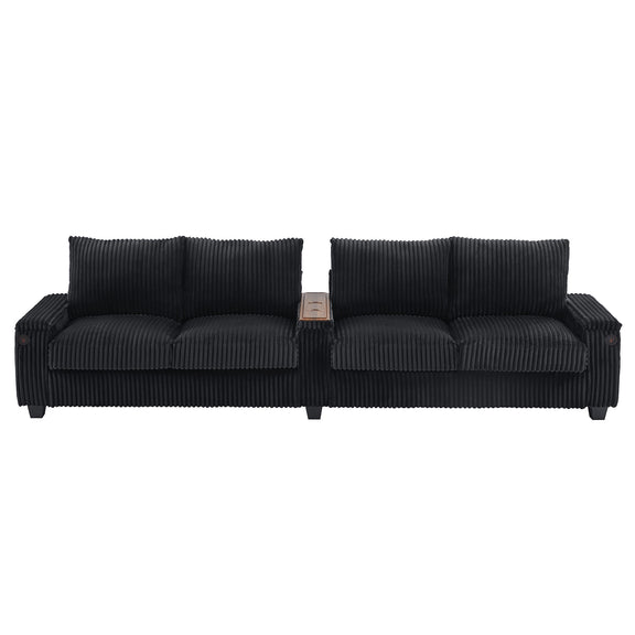 Modern 4 Seater Corduroy Sofa Couch With USB Ports And Hidden Storage - Black