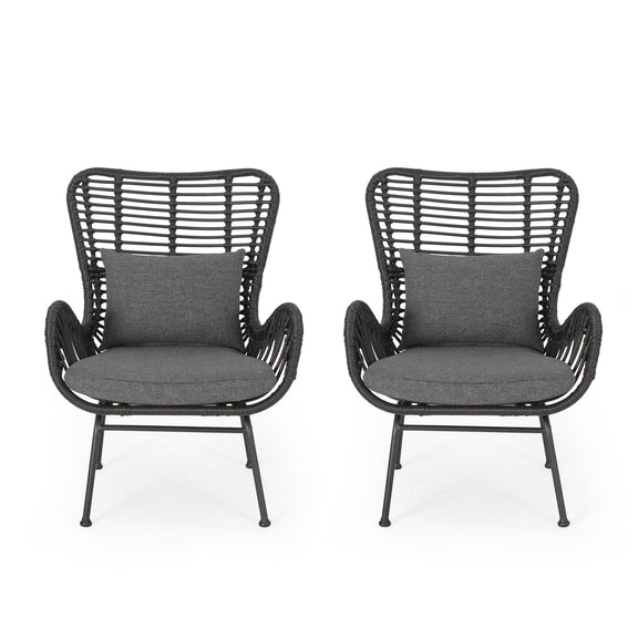 Outdoor Wicker Club Chairs With Cushions (Set of 2) - Gray