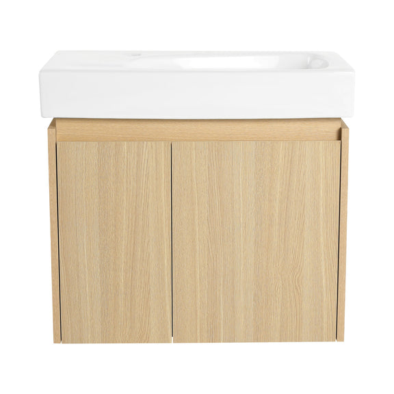 Modern 24" Bathroom Vanity With Ceramic Basin, Wall Mounted Floating Sink Combo, Wooden Storage Cabinet - Oak