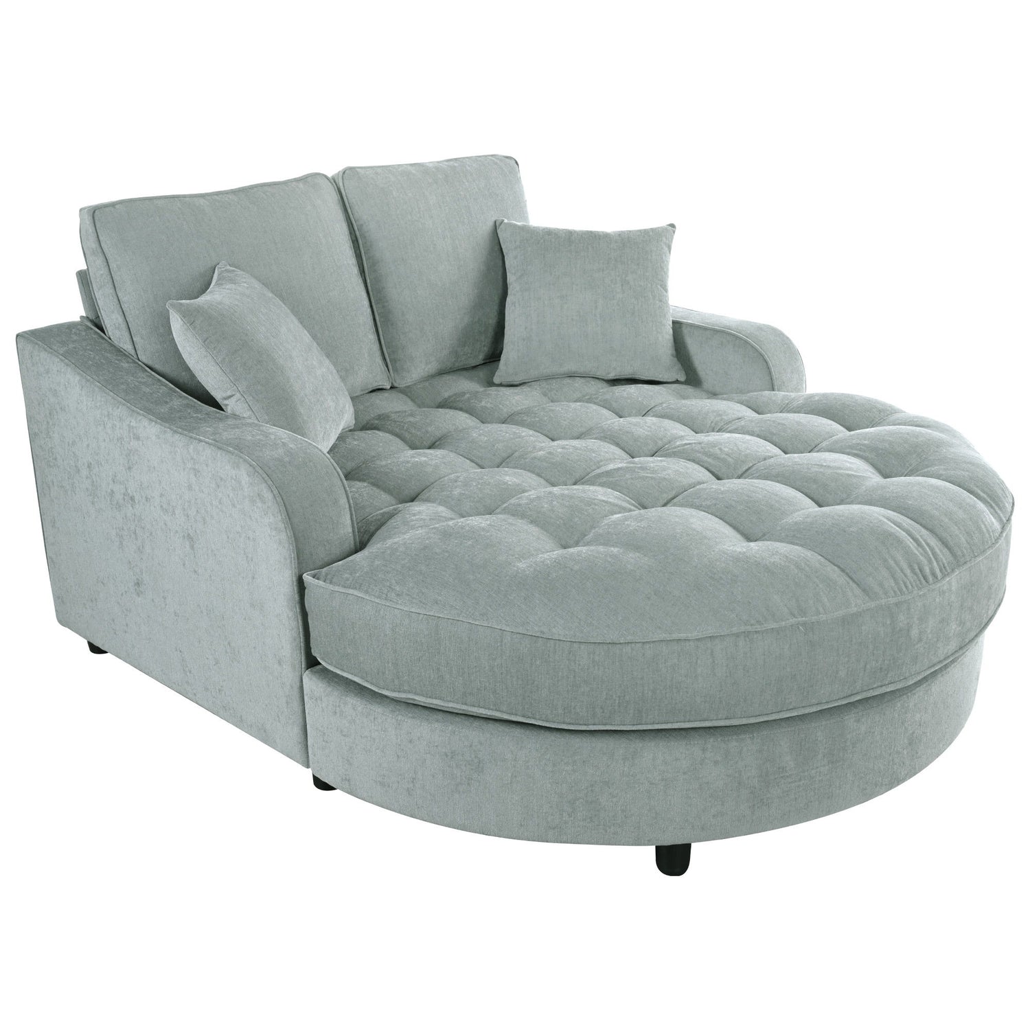 Chaise Lounge Sofa Bed With Tufted Seat And Detachable Pillows Chenille - Beige