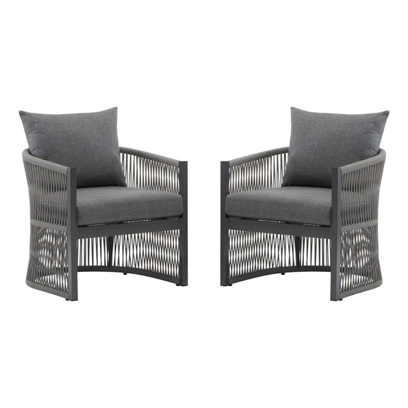 Modern Curved Aluminum Lounge Chair With Rope Weave Design And Cushioned Comfort (Set of 2) - Gray