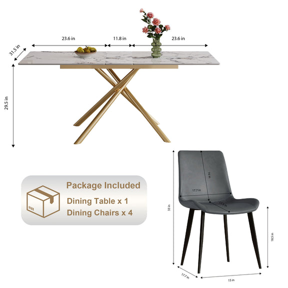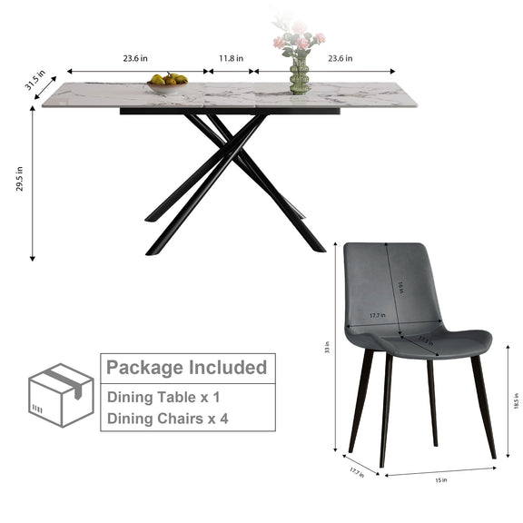 Expandable Dining Table With Retractable Leaf, 4 - 6 Person Set With 4 Chairs - White
