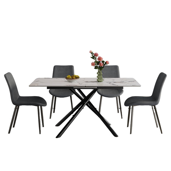 Expandable Dining Table With Retractable Leaf, 4 - 6 Person Set With 4 Chairs - Black