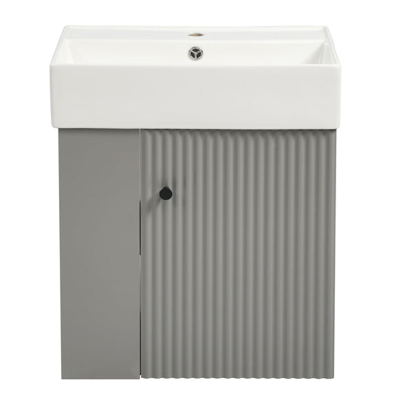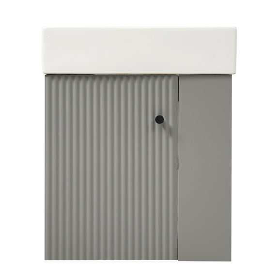 Floating Bathroom Vanity With Basin, Left Side Storage - Gray