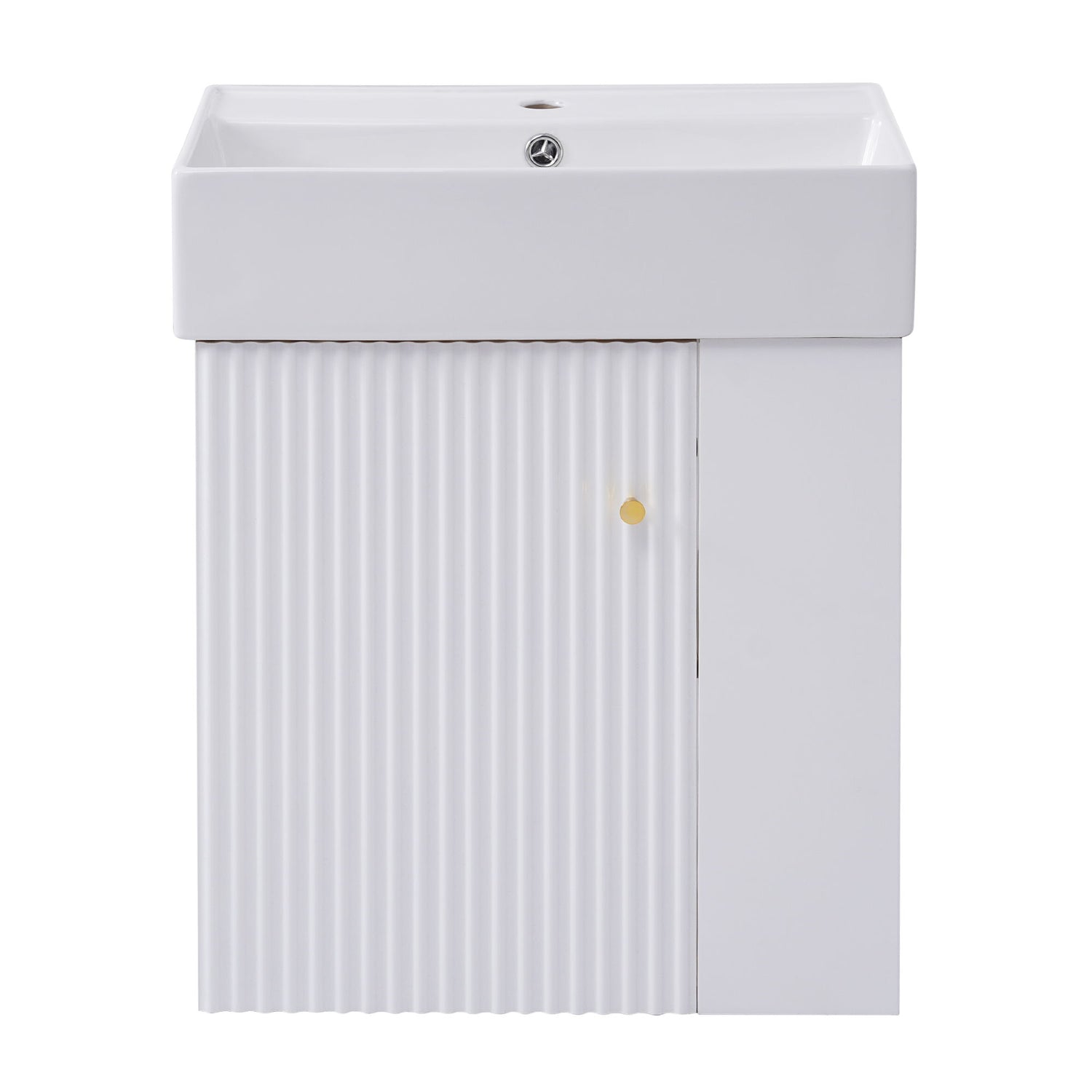 Modern Floating Bathroom Vanity With Ceramic Basin Perfect For Small Bathrooms, Left Side Storage - White