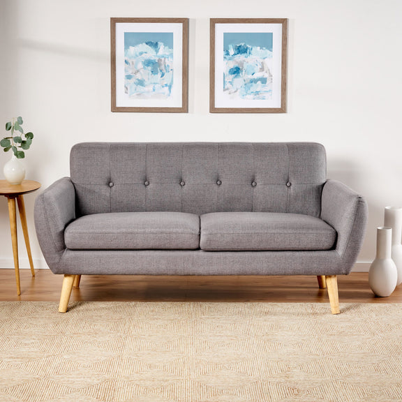Mid Century Modern Loveseat Sofa With Button Tufted Backrest - Dark Gray