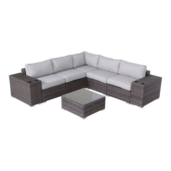 Patio Furniture Set With Cushions, Weather Resistant, 8 Piece Modular Arrangement - Brown