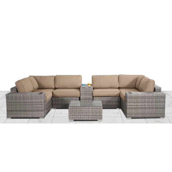 Outdoor 11 Piece Sectional Seating Set With Cushions - Espresso