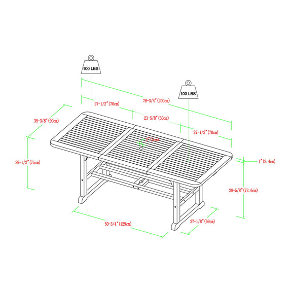 Modern Slat Top Solid Acacia Wood Butterfly Outoor Dining Table - Brown