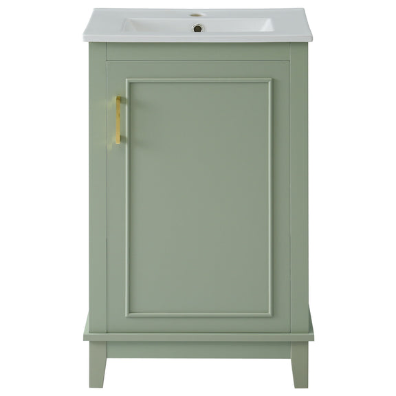 Modern Small Bathroom Vanity Cabinet With Ceramic Basin, Ample Storage, 1 Soft Close Door - Green