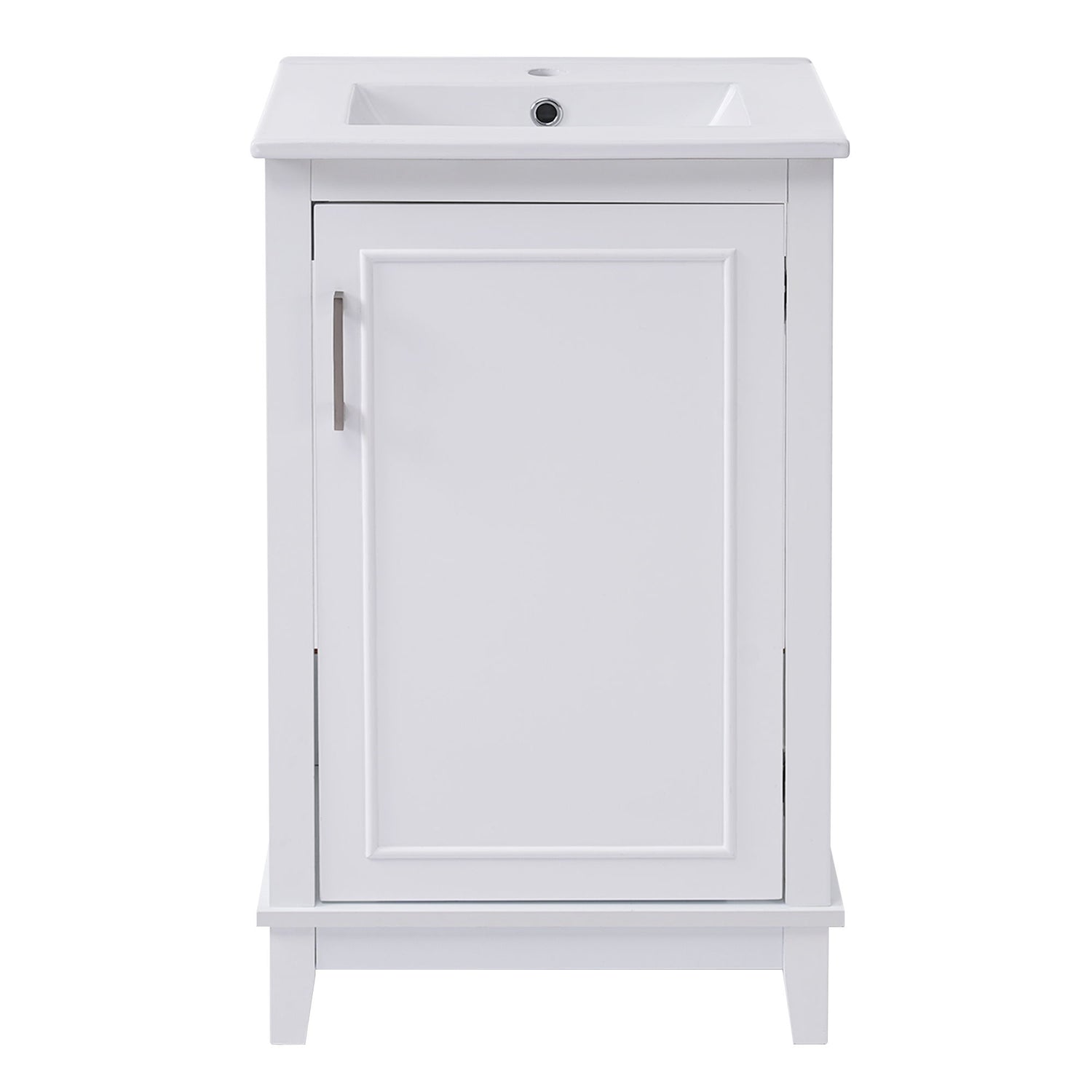 Modern Small Bathroom Vanity Cabinet With Ceramic Basin, Ample Storage, 1 Soft-Close Door - White