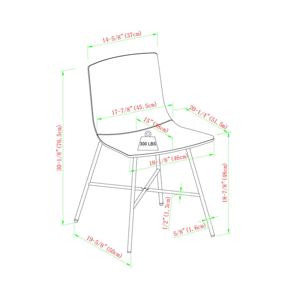 Modern Upholstered Dining Chair With Metal X Base (Set of 2) - Black