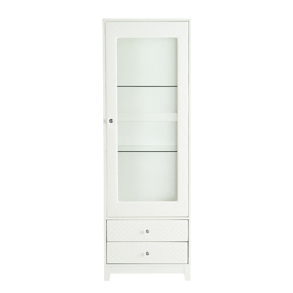 Modern Upholstered Glass Display Cabinet With Adjustable LED Light - White