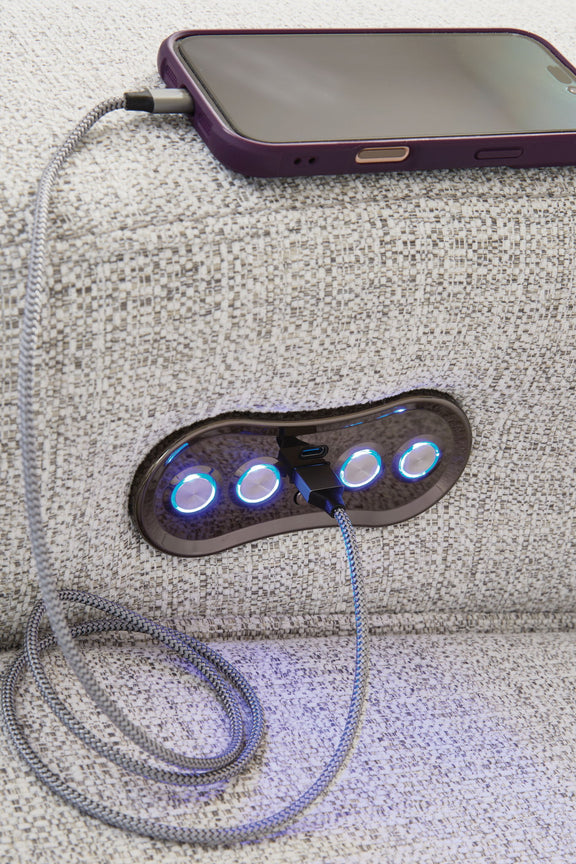 Modmax II - 6-Piece Power Reclining Sectional With RAF Press Back Power Chaise And Audio Console - Stone