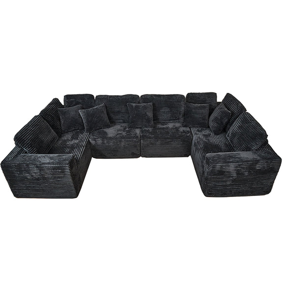 - Spacious Wale Corduroy Sofa: Features a luxurious striped fabric with an elegant, contemporary U-shaped design. Adds timeless sophistication and becomes the stylish centerpiece in living rooms, apartments, or bedrooms.