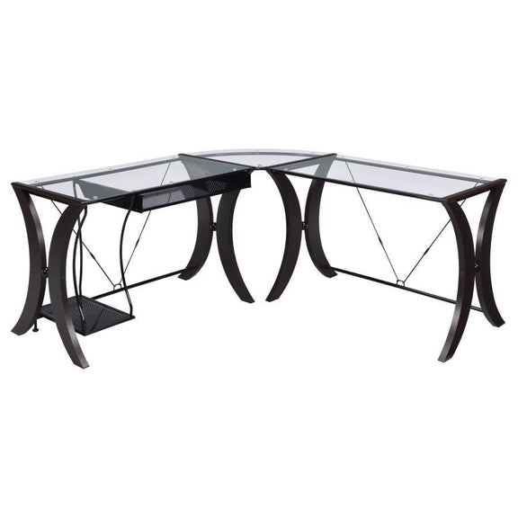 Monterey - Glass Top L-Shape Computer Desk - Cappuccino