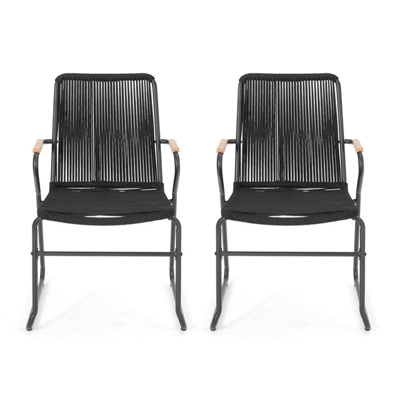 Moonstone - Outdoor Club Chair Set With Rope Weave Design - Black