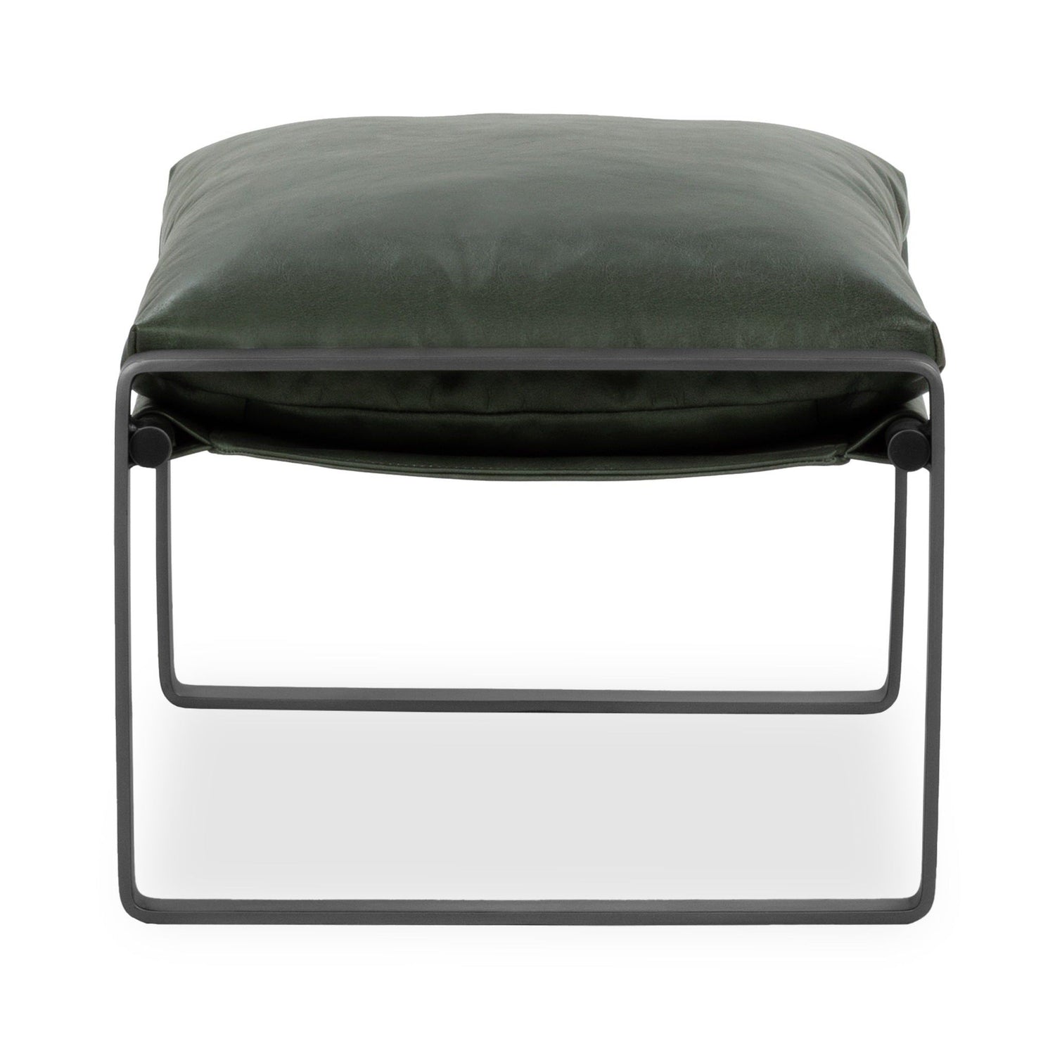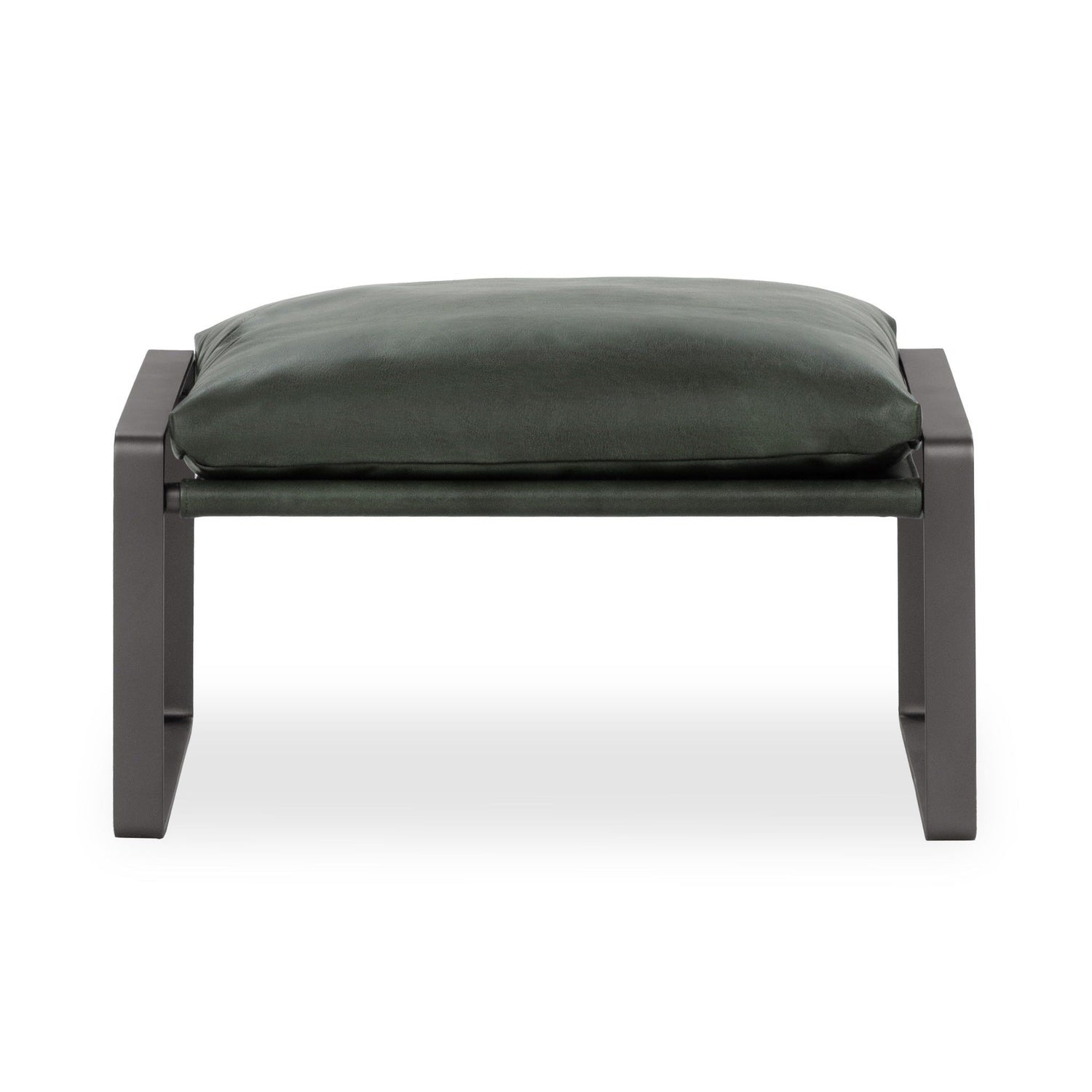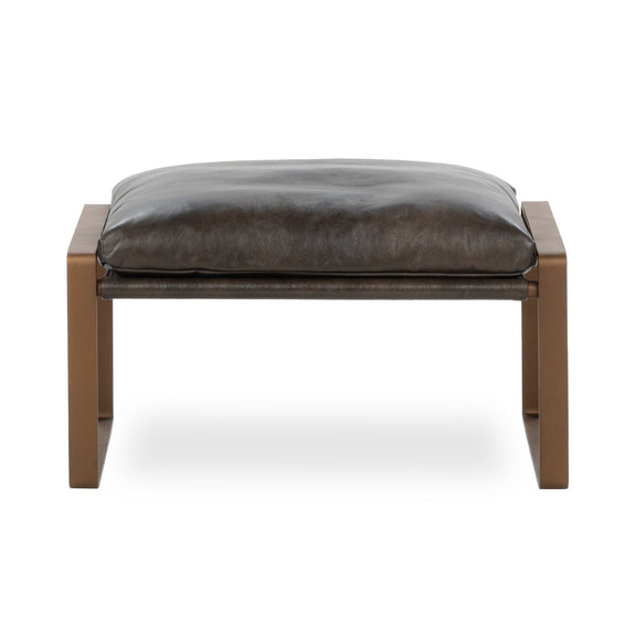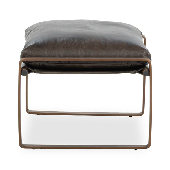 Add modern comfort to your space with this top grain leather ottoman, featuring a plush, dark leather cushion and a sleek iron frame. The clean, minimalist silhouette pairs perfectly with industrial, contemporary, or urban interiors. Use it as a footrest, extra seat, or stylish accent in any room. This leather and iron ottoman delivers durability, luxury, and versatility in a compact, eye-catching design ideal for modern living spaces.