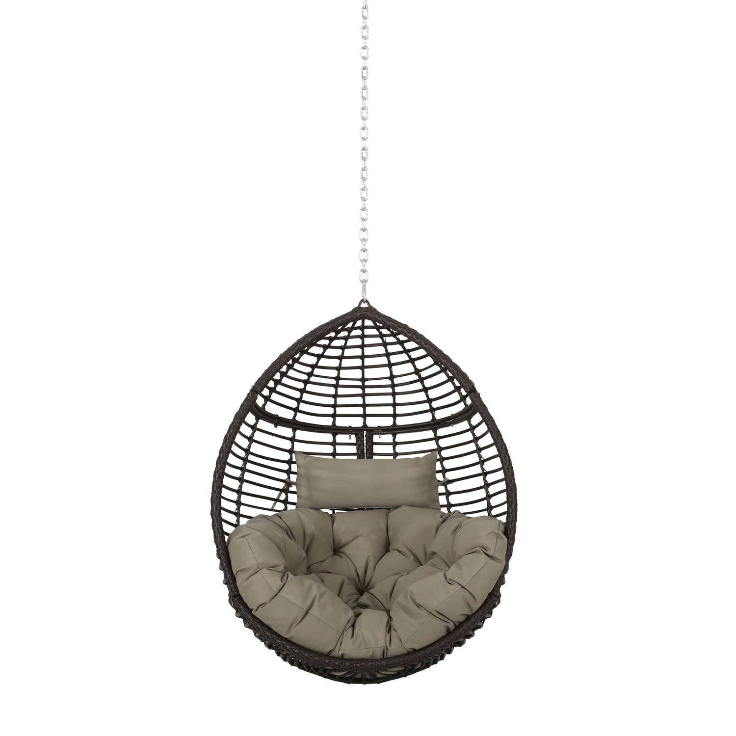 Morris - Teardrop Hanging Chair With 8Ft Chain And Water Resistant Cushions - Khaki / Brown