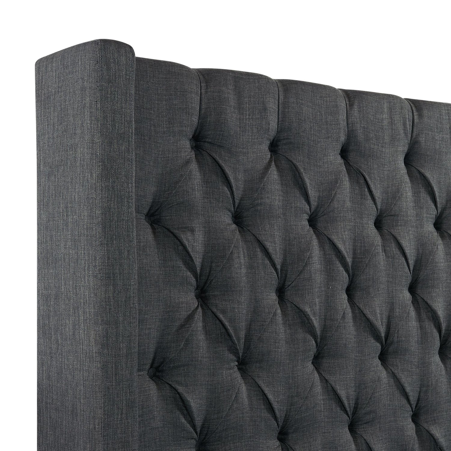 The Morrow Upholstered Bed will be the focal point in any bedroom. The diamond tufted headboard is perfectly upholstered in a durable fabric. The grand size of the headboard adds a little bit of drama to your space while still bringing warmth and a sense of coziness with the fabric wrapped framing. Add this to your bedroom for an effortless look of elegance.