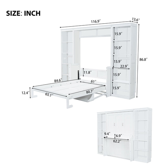 Queen Size Murphy Bed & Desk And Bookshelf - White