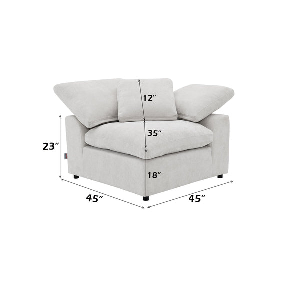 - Elegant Ivory Finish: The sectional is upholstered in a sophisticated ivory linen, providing an elegant touch to any living space while maintaining a neutral and versatile color palette.