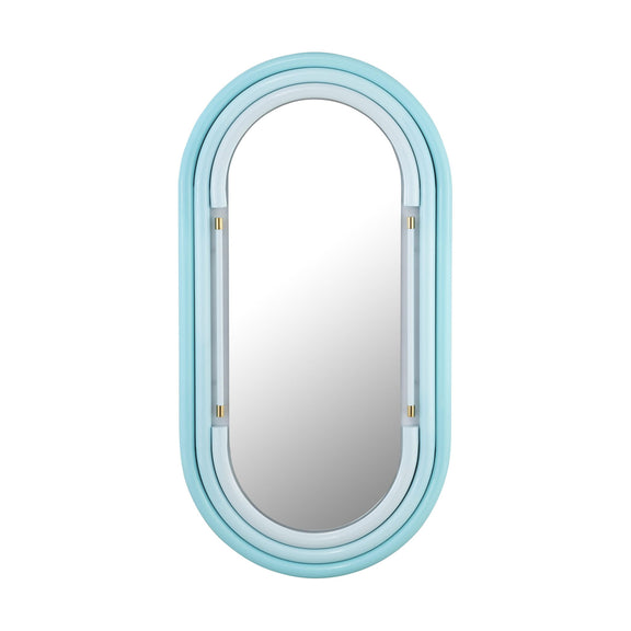 Introducing the Neon Mirror - the perfect combination of style and fun. Crafted from wood with gold iron accents, different shades of blue add dimensions to the otherwise minimalistic frame. This mirror is available as a wall mirror or as a floor mirror, and it will undoubtedly add a pop to your room!
