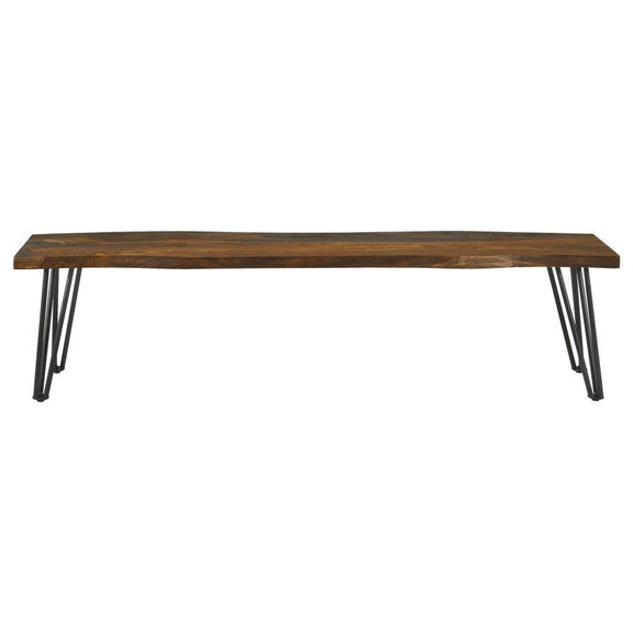 Neve - Live Edge Wood Dining Bench Hairpin Legs - Gray Sheesham