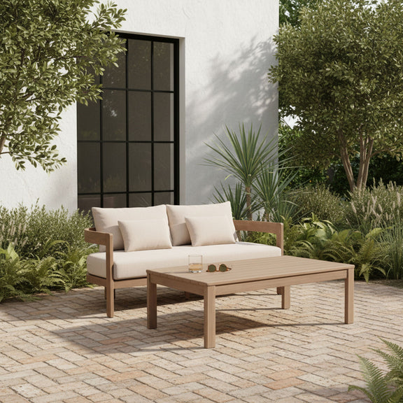Water-resistant fabric and a natural acacia wood frame make the Newport patio loveseat a standout for any outdoor setting. Built with quick-drying foam and thermowood treatment, it's designed to handle the elements without compromising style. Perfect for lounging, this contemporary piece blends casual comfort with sleek sophistication.