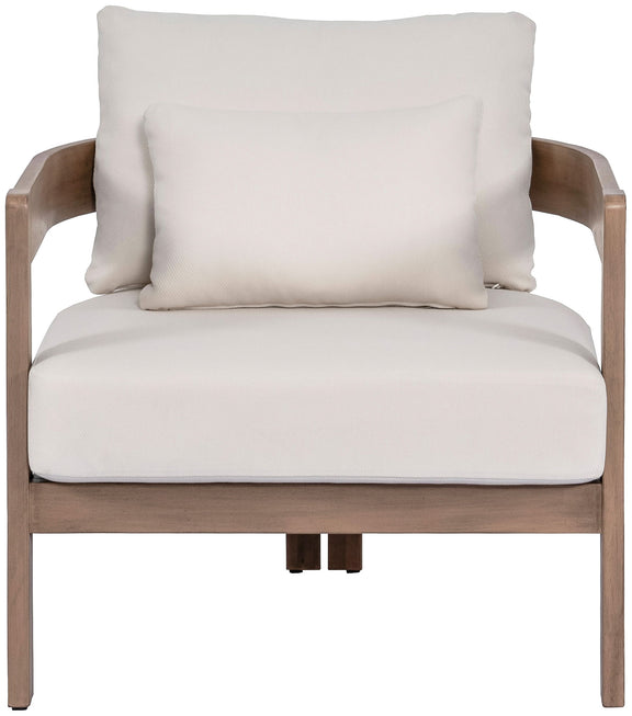Water-resistant fabric and a natural acacia wood frame make the Newport patio chair a standout for any outdoor setting. Built with quick-drying foam and thermowood treatment, it's designed to handle the elements without compromising style. Perfect for lounging, this contemporary chair blends casual comfort with sleek sophistication.