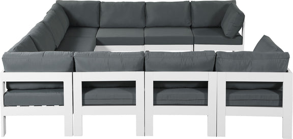 Nizuc - Outdoor Patio 10 Piece Modular Sectional With White Frame - Gray