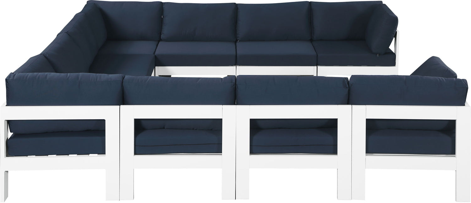 Nizuc - Outdoor Patio 10 Piece Modular Sectional With White Frame - Navy