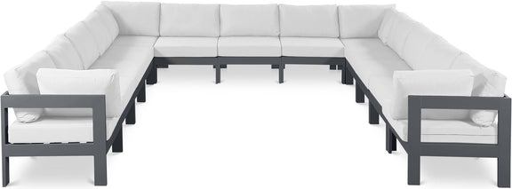 Nizuc - Outdoor Patio 13 Piece Modular Sectional With Gray Frame - White