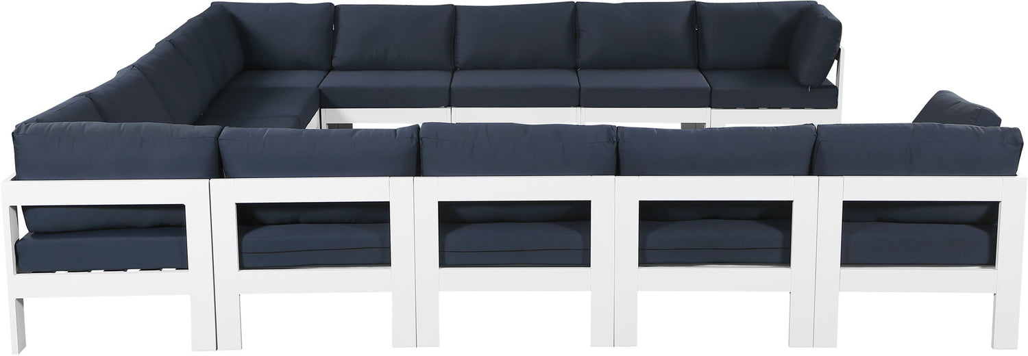 Nizuc - Outdoor Patio 13 Piece Modular Sectional With White Frame - Navy