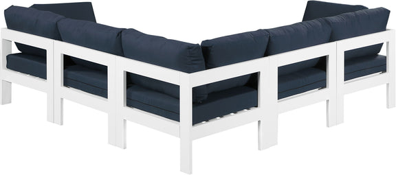 Nizuc - Outdoor Patio 5 Piece Modular Sectional With White Frame - Navy